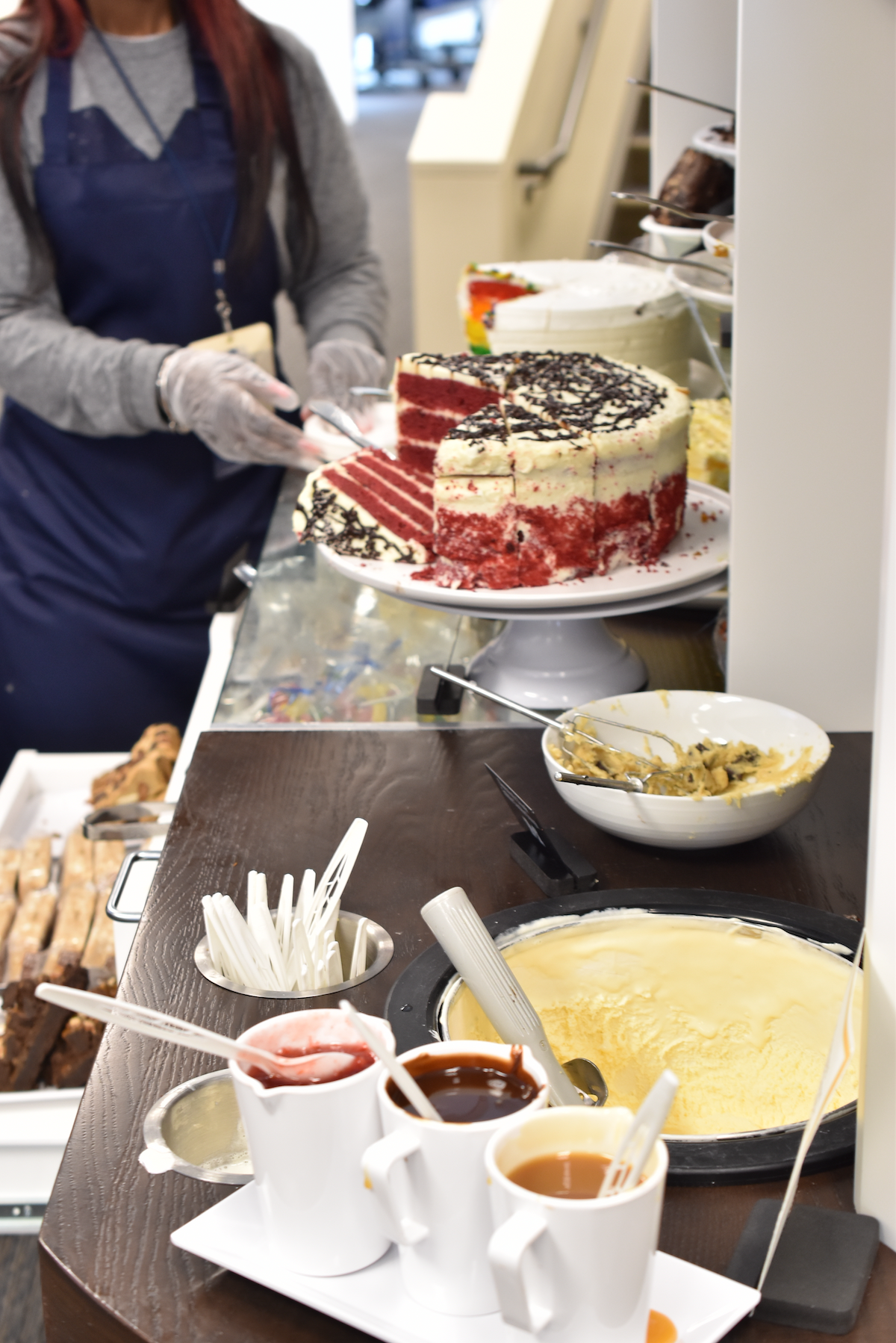 The option to top it with caramel (the choice today), chocolate or strawberry only made it better. And there were a number of other desserts available.
